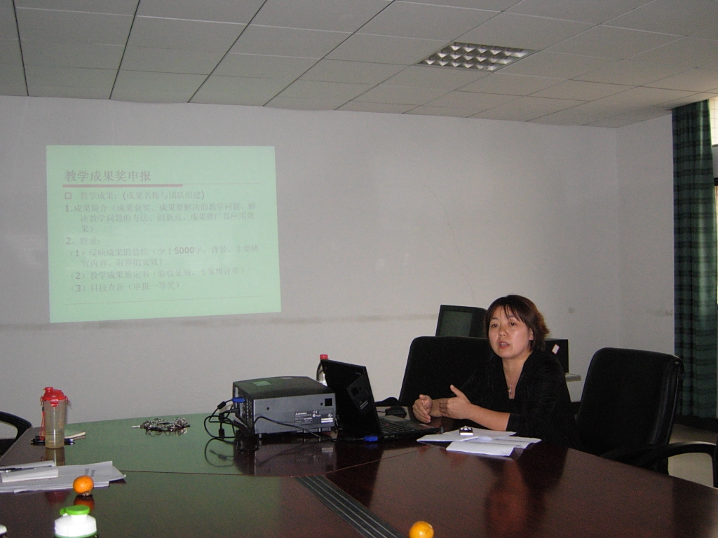 在报告中,何教授介绍了外国语公司近年来在教学研究方面取得的突出成绩,并总结了外国语公司在教学研究方面的经验。她指出,教学研究是紧密联系实践的研究,平时教学过程中的所有环节,小到教学方法、大到人才培养模式,都可以拿来做研究。因此,教师们在教学过程中要做有心人,时时观察和思考教学和人才培养中的问题,有针对性地开展研究。在谈到教研课题和教学成果奖的申报时,何教授认为,教学研究课题在选题上要具有前瞻性和连续性,教研课题要为教学成果奖的申报作铺垫和支撑性工作。教学成果奖的申报是个系统工程,既涉及到教研课题的立项和结题时的专家意见,又涉及到教学成果的转化,因此需要前期作好统一规划和安排。