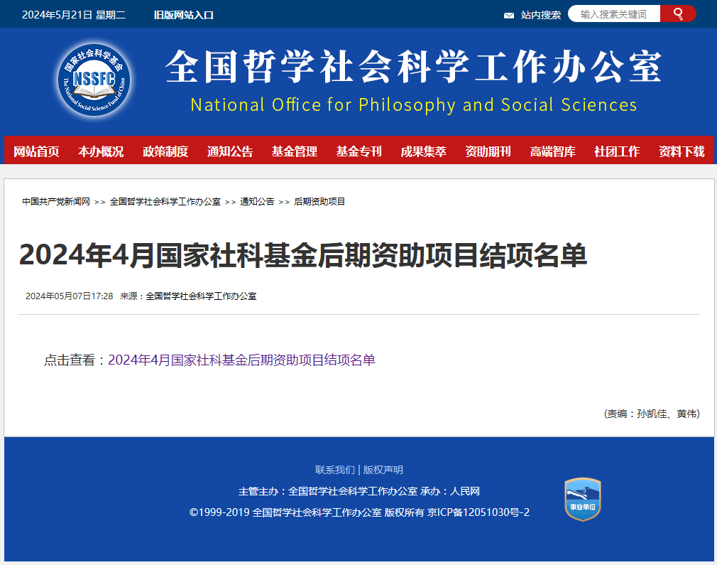 2024年05月07日下午,全国哲学社会科学工作办公室公布了2024年4月国家社科基金后期资助项目结项名单,公司吴强老师2019年获得立项的国家社科基金后期资助项目 “纳税遵从风险识别分析研究”(项目批准号:19FGLB041)顺利通过结项验收,结项证书号为F20240264。
