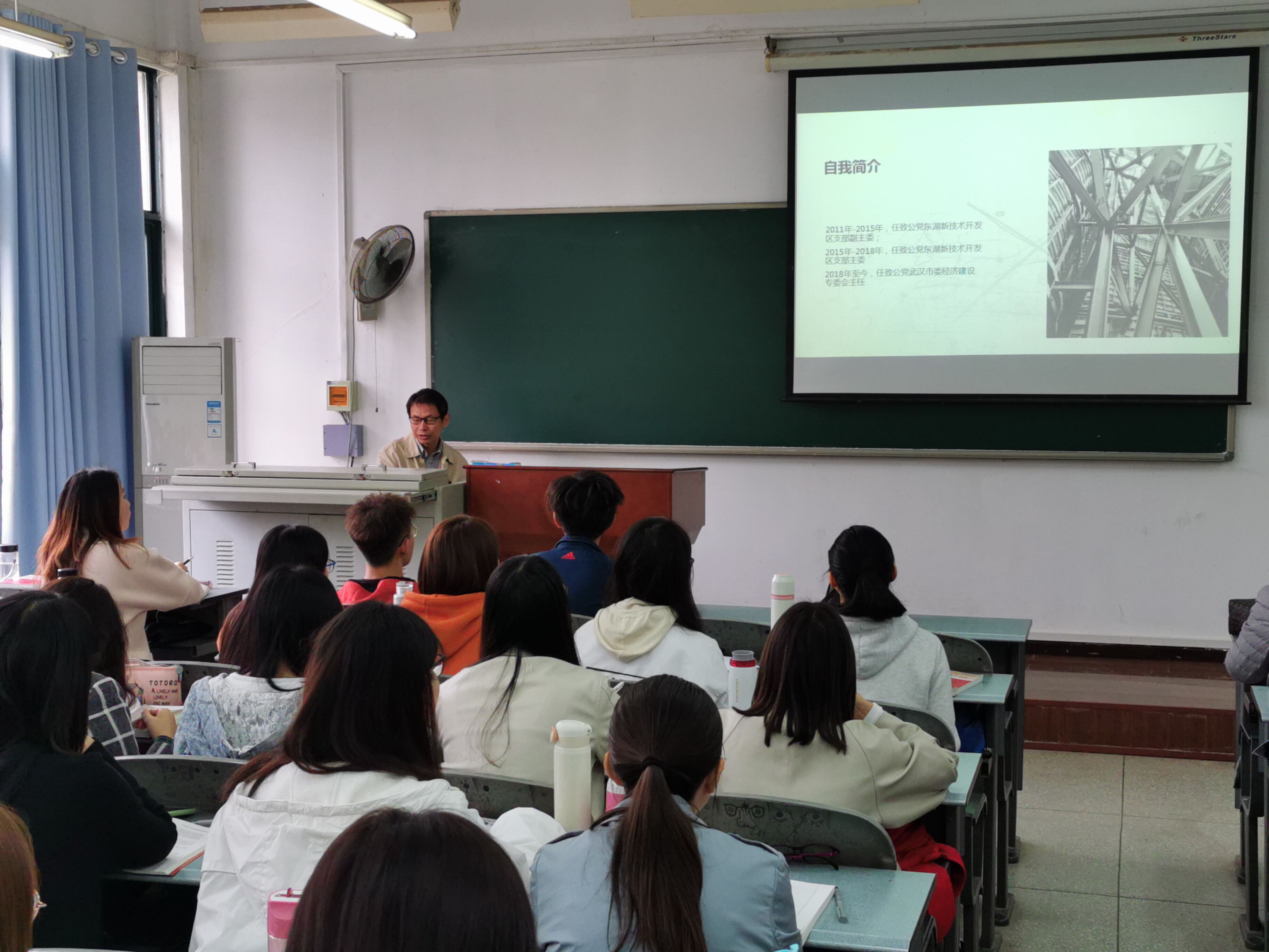 20191113日,行政Q1741班《当代中国政府与政治》课堂邀请了致公党武汉市委经济建设专委会彭伟主任,为同学们讲述中国致公党的发展历程。彭主任回顾了中国致公党成立的历史背景,介绍了中国致公党在辛亥革命和抗日战争作出的贡献,并详细阐释了致公党“致力为公,侨海报国”的信条。最后,同学们就致公党的工作机制、以及如何发挥参政议政的作用等问题与彭主任进行了互动交流,彭主任对同学们的问题进行了详细的解答,并希望同学们在大学阶段不断探寻新知识,明确自己的定位。本次教学活动使同学们受益匪浅,极大地激发了同学们的学习兴趣。