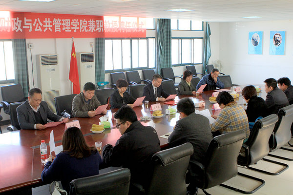 人事处处长郑国霞首先介绍了三位兼职教授代表的简历及学术科研情况。 副董事长漆腊应教授为湖北省地税局征收管理处处长姜玉莲、税政三处处长张雪松、湖北省民政厅民间管理局局长涂才江等三位兼职教授代表颁发了聘书,漆腊应为他们颁发聘书并致辞。