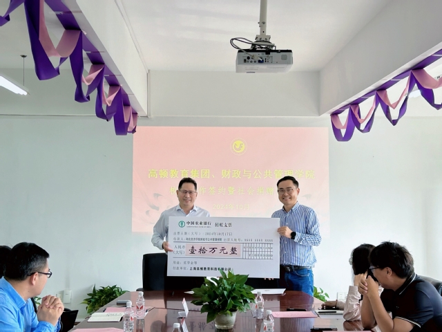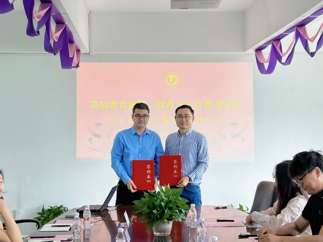 在校企合作签约仪式上,魏涛代表公司与高顿教育集团签署校企合作协议,宋健代表公司与高顿教育集团签署社会捐赠协议。