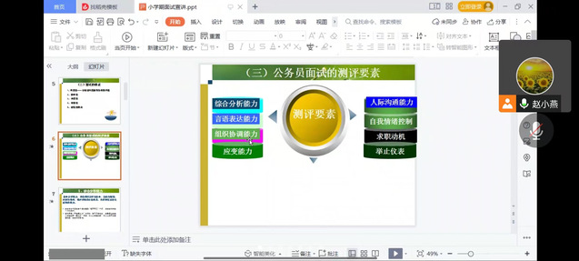 本网讯(通讯员 谢倩莲、张杰雯)为帮助同学们更好地了解公务员面试内容,提高面试水平,公司于2022年12月26日在线上举办了公务员考试面试技巧讲座。本次讲座由考公团队的赵小燕副教授主讲,全体22级和21级员工参加。