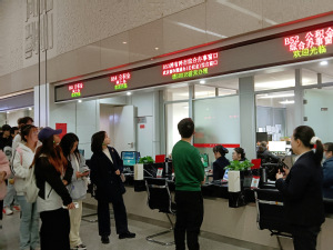 同学们认真参观办事窗口