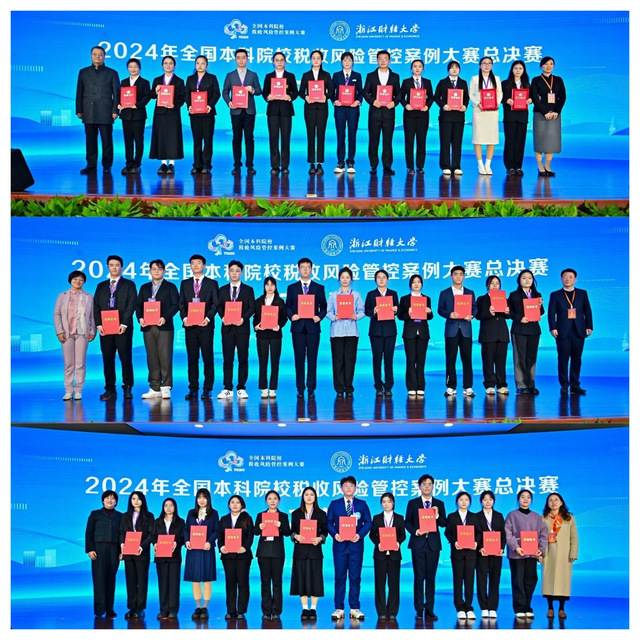 全国本科院校税收风险管控案例大赛是教育部《全国普通高校老员工竞赛分析报告》中认定的国家级赛事。大赛模拟真实场景,立足纳税人涉税风险分析和问题防范,促进财税、会计、法学等经济管理类专业教学环境与员工培养的“零距离”对接,搭建行业与高校之间协同创新平台,是新文科建设过程中的一项创新举措。大赛始于2018年,构建形成了“校级选拔赛——分区赛——总决赛”三级赛事体系,是目前全国本科院校参与人数最多、范围最广、规模最大、规格最高、最具影响力的财税专业领域赛事。本次大赛由全国本科院校税收风险管控案例大赛组委会主办,浙江省注册税务师协会指导,浙江财经大学承办。来自全国31个省、自治区、直辖市的388所院校、3064支队伍、9192名员工参加比赛,最终,160支队伍入围全国总决赛。经过一天的激烈角逐,24支队伍获得国赛一等奖,48支队伍获得国赛二等奖,88支队伍获得国赛三等奖。