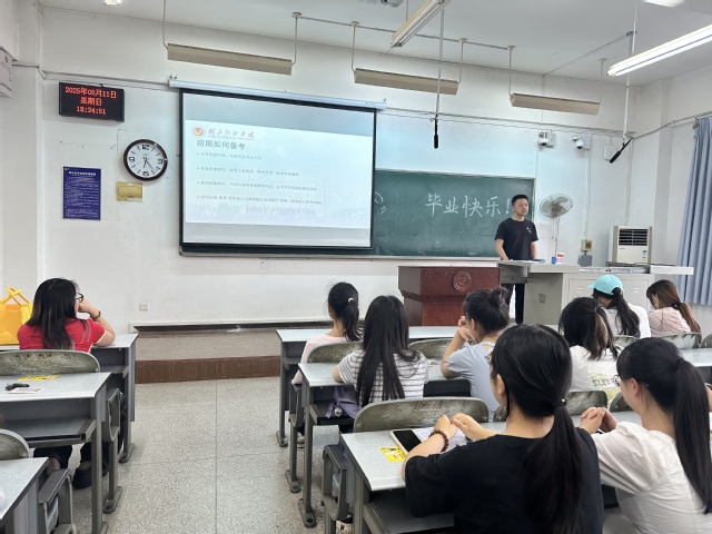 紧接着,徐晓雨同学深度剖析考研备考方略。通过拆解“基础-强化-冲刺”三阶段备考体系,建议同学们建立个性化知识图谱,合理分配时间,避免盲目学习。两位分享人还以“行动上刻不容缓,心态上得失随缘”的座右铭,引导同学们平衡备考节奏与心理调适。