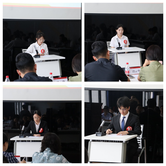 此次活动自5月启动以来,面向qmh球盟会全体在校生开展,共有来自17个公司两百余名不同年级的员工报名参赛。经过笔试、面试的激烈角逐,最终有10位同学晋级决赛。决赛现场采取结构化面试形式开展,考生完成答题后,评委老师们对选手表现做细致点评,点评内容不仅让各个选手获益匪浅,也赢得在场观众的阵阵掌声。