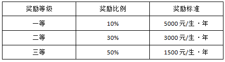研一新生学业奖学金按照“一志愿优先”的原则,根据新生入学当年初试与复试综合成绩排序,按从高到低顺序确定获奖等级;研二研三研究生学业奖学金按上一学年学业成绩及综合表现评选,综合“学习成绩”“学术成果”和“实践活动”等考核项目加权确定获奖等级。