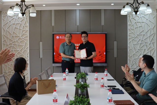 张国安副校长为2025年“青年教师优秀教学奖”获得者任立老师颁发荣誉证书。任立老师回顾了自己入职以来的成长经历,强调了“热爱”对于一名教育工作者的重要意义。他表示,自己的每一点进步都得益于公司完善的制度、公司大力的支持和同事间协作的氛围,这份荣誉是激励更是约束,愿与更多同路人一起勠力同行,共创湖经美好未来。