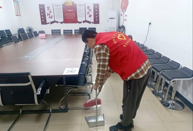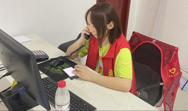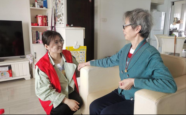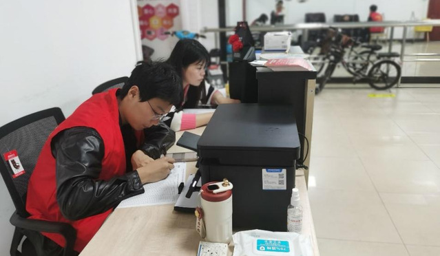 爱心服务社区,图为志愿者协助社区工作人员完成工作,营造良好伴老环境