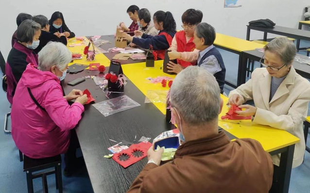 爱心陪伴,图为志愿者们陪伴老人进行手工品制作