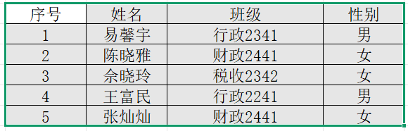 接校团委通知,公司本学年团员发展名额予以增补, 根据《中国共产主义青年团发展团员工作细则》,经本人申请、班级推选、理论考试、团委审批,拟接收易馨宇等5位同学为新发展团员。现将名单公示如下: