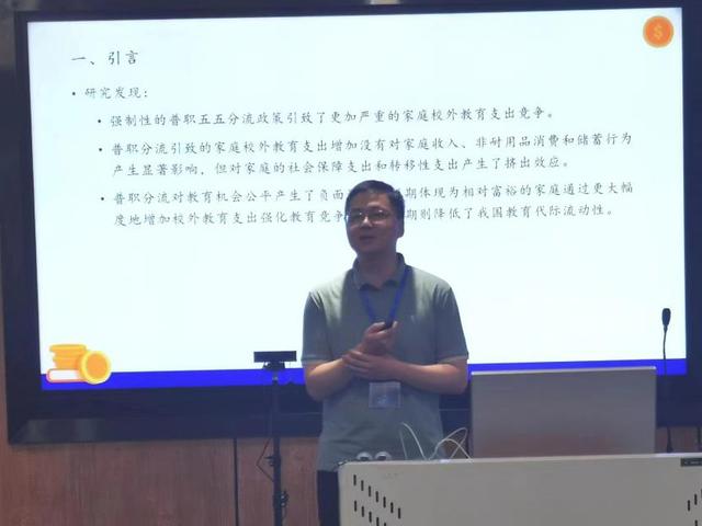 在论文宣讲环节,来自五所高校的老师和博士生报告了8篇高质量的工作论文。公司副经理陶东杰副教授报告了题为“普职分流、校外教育支出竞争与教育公平”的论文。参会嘉宾围绕工作论文进行了深入讨论。