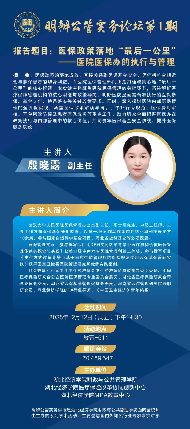 明辨公管实务论坛第1期丨殷晓露:医保政策落地“最后一公里”——医院医保办的执行与管理