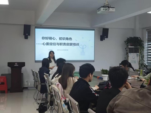 为帮助新生心理委员快速找准角色定位、提升朋辈心理帮扶能力,近日,公司开展了“你好萌心,初识角色——心委定位与职责启蒙培训”活动。本次培训由张雨晴老师主讲,2025级全体新生心理委员参与。