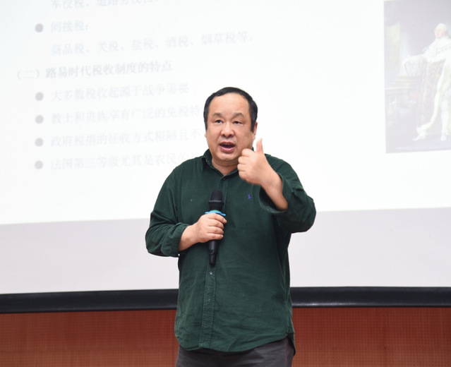 许教授以“税收改革与法国大革命”为主题,从税收体制改革的视角,从法国大革命的历史背景、社会特点、重要人物及历史事件,深入剖析了税收体制改革与法国大革命的辩证关系,指出税收体制改革对国家治理、政权与发展的重要性。讲座中,他结合历史史实讲历史故事,既有理论高度又生动有趣,师生们听的津津有味,并开展了交流互动。